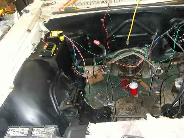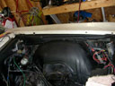 Updates. As of 4-1-2003. Pictures of my redone engine bay. Smoothed lots of dings and dimples that where on the fire wall then painted in flat black to attempt to contrast the attention to the shiny motor once its put in. Everything was a bit dusty when I took the pics so its looks better in person.