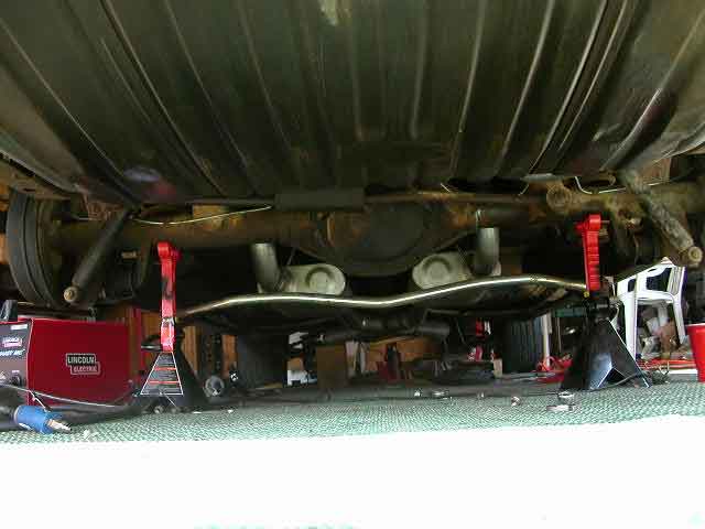 Rear sway bar! I bought this back in 2001 and I never installed it. When I was installing it I could not find my instructions so I just kinda guessed where it was suppost to go, and I came really close, it was only a half inch off. So I called it good, I may have to shim it later but I doubt it. In the second to pictures you can also see where I boxed the rear lower control arms which is where the sway bar connects. I wanted to make sure the sway bar didn't bend them up to bad when I start throwing this car into the corners. I know the welds are not that great, but I was laying on my back welding upside down and its only a low amp wire feed welder, but still it should hold!