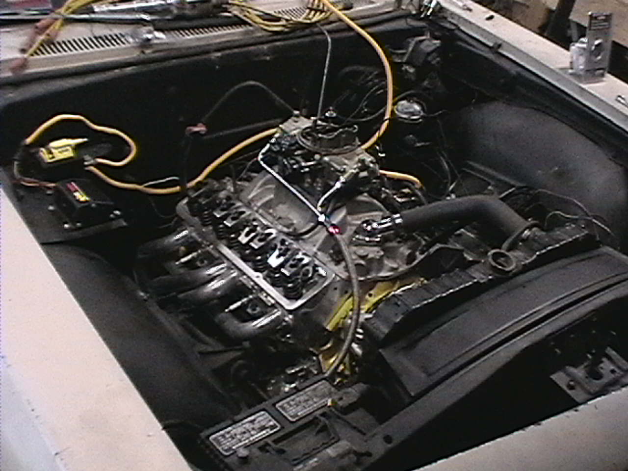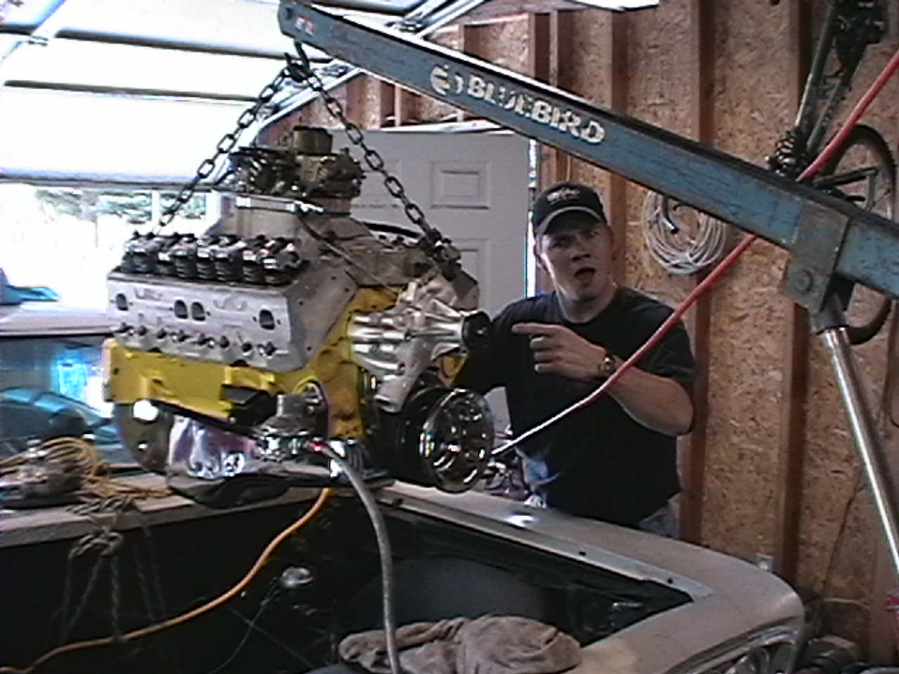 Updates. As of 11-24-2003. Its nice to have friends and even nicer to have a girl friend that can pick up a tool now and then. One of my buddies (we call him furdog) was over to assist me with the motor install and to make sure he got to hear it run for the first time. My fiancee is up there on the car running the priming drill to 50psi while I am under the car turning the crank over with the torque wrench to make sure ever inch of the motor is covered in good breaking lube. Tranny: After getting the motor running and tuned in. I decided to see how quick it was. I had a daily driver turbo car (1990 Eclipse turbo) that I upped boost to 19psi and it ran 14.4 at 96.7 mph front wheel drive. So I had my buddy pull it up beside me in the Impala at a designated location. The first time I eased it out of the hole giving the turbo car a chance to spool into boost then proceeded to pull away nicely. What fun, so we did it again. This time I was gonna show my friend what the Impala would really do. 3,2,1-GO! I squeeze the pedal just to the point of tire spin and start to feather it right up to rev limiter (6500rpm) and right before I hit rev limiter I kicked the shifter to second in just enough time to bounce off the rev limiter a few times then it whacked into second gear with a chirp of the tires but before that second was over the rpms jumped right back up to rev limiter but the tires where not spinning.. So I back out of the throttle then touch off again but not much happened except the rev limiter. So I poped to 3rd gear and it started to go again. Then I knew 2nd gear was toast. It was broke by why stop now? I still have 2 gears left. We lined up a third time and went for it, this time I took it up to rev limit and skipped past 2nd right to third and proceeded to leave that Eclipse in tranny smoke. So we can easily say that my Impala is faster then 14.4 in the 1/4 while skipping 2nd gear :) Stay tuned as I try to find a 6 speed stick or auto tranny to throw in. I estimate spring to early summer of 2004 I will be putting in a new tranny. For now I will just skip 2nd and use pure torque.