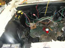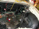 Here we have my relay bar that I added to help take the electrical load off the cars old wiring and ignition switch. These relays where out of a junk yard 1991 Chevy Cavalier or something similar. Cost me $12 bucks and was well worth it. One relay controls the low beam head lights, one for brights, then one for the Accel 300+ ignition, and the 4th one is not used yet but it might be used for electric cooling fans if I put them in.