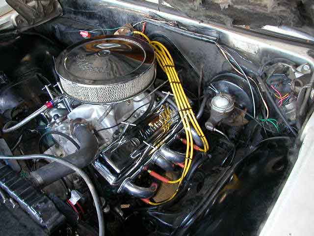 Engine rebuildMy First engine build... After running the high mileage 350cid low on oil and seizing a rod which broke in 3 places and ripped the piston in half while taken a chunk off the bottom of the cylindar walls I was time for a new engine. I got a new core 350 from a 71 2wd truck reused my heads but put some new seals on so it wouldn't burn 2 quarts of oil per tank of gas. I used Umbrella seals with valve stem seals. Core: 1971 350cid 4 bolt mains. It was in such good shape I just cleaned it up and honed it out and used the standard bore size for the build up. This core had 4 rods that seized so the crank was toast. I used the crank from my engine that threw a rod it was turned down .020 mains and .030 on the rods. I used a few of the rods from the core and the rest of the rods from my engine for the rebuild. I just tried to match them up best I could, but I never measured rod clearance so I suspect I lose some of my oil pressure to the extra clearance. but the mains and rods came real close to plastigage spec. This assembly was never balanced and as a matter of fact the engine never went to a machine shop not even the heads. Parts: I got a summit racing rebuild kit that came with 10.9:1 compression ratio hypereutectic dome-top pistons, moly rings, ture roller timing chain, gaskets w/plastigauge, cam main and rod bearings. Summit Racing part number FEM-MHP128-000 I guess there kit is now 10.72:1. I also added a high volume oil pump, and some chrome dress up pieces, and a summit racing 224x234 @ .50 cam w/comp cams matched springs, I figured it to be a decent starting cam to hop up performance a bit but still keep the engine well manered. This was all topped off with an edlebrock Performer RPM intake and my Q-jet carb. Accel billetproof magnitic pickups distributor w/supercoil. The Build: When I got my parts I tore into it, scraped the top of the head surfaces of any gastket material or grime, sprayed degreaser all over it and presure washed it with more degreaser and high pressure soap and water in a buggy bath car wash, honed the cylindars, and it was pretty much ready for parts, a quick shot of WD40 to prevent rust since it was pretty humid. I started with borrowing a cam bearing installer got my bearings installed perfect even verified with a piece of wire the oil holes aligned. Crank was ploped down on the bearing halfs with some white lithum grease pre lube, then the main caps when on with a plasigauge in each. only one main I think it was #2 from the front of the block I replasigauged with 4ft lbs more torque and it was in spec. I had a friend press in the rist pins for the piston to rod assembly and in went the pistons, using a piston ring compressor that tightens around the pistons and slides off as the piston is tapped in with a rubber mallet. After about the first 4 pistons It was getting so hard to turn the engine over that I had to use a long wretch with breaker bar on the stock crank damper to get the engine aligned for the other pistons. K with the pistons in the cam was next, soaked it up with break-in lube and in it went with no problems. I installed my High volume oil pump and got it posistioned just right and rolled the motor back to the top side with my nifty engine stand so I could lubed up the lifters to drop in and get ready for sealing up the motor. I put the on Comp cams matched springs that where matched with my cam by summit and made sure my valves where seated properly and checked the clearances of everything to make sure it would support the .488 max lift of the cam with my stock 1.5 ratio stamped steel rockers. On went the heads with the stock pushrods, rockers, valves etc. Got the heads bolted down with the same bolts that held them down before but with a milodon dead soft copper head gasket smashed between deck and heads to help control the compression I was planning on. I put the stock oil pan back on and touched it with some extra paint I had laying around and it was read for installing into the impala. Installation: With my 1966 Impalas engine bay presure washed I figured it was ready for the motor, but heres where I got to excited about getting the motor running, I should have spent alot more time and compleatly cleaned and painted the engine bay for the motor, word of advice paint your engine bay the way you want it before the motor goes in so you dont have to take your motor out in the future to paint the engine bay in detail. Well anyway I struggled with splining my driveshaft with my transmission at the same time as tring to lift it on the cross member. I look back now and wander why I didn't just undo the 4 bolts at the rear end and take the driveshaft off, but then again this was my first major experience with this level or work on a car. Once the trans was in place and bolts finger tight on the mount I lowered the engine down and after an hour or two was tightening the trans bolts and engine mounts. I bolted on my stock manifolds with the still stock 2inch singal exaust, my stock GM starter, alternator and on went the intake and carb then my points style distributor (I put a drill to the oil pump to presureize the system with freash oil before the distrib when in) and started bumping the starter over to adjust my rockers. This is where I started wandering how the motor was even going to start as the starter would strain to even kick the engine over I had to hit the starter several times to get it to move an inch but I kinda passed it off as a low battery for now. With the rockers adjusted plug wires hooked up battery charged I tryed to start the engine for the first time. The Problems: Well as you might have guessed, the engine didn't start, as a matter of fact the engine still turned slowly, to slowly to prolly start, and after trying for a few hours, I went and bought a new battery, The biggest one the auto parts store had on there shelf. It was a 1150 cold cranking amp RV battery, talk about a heavy sucker, it was still close in size to 
